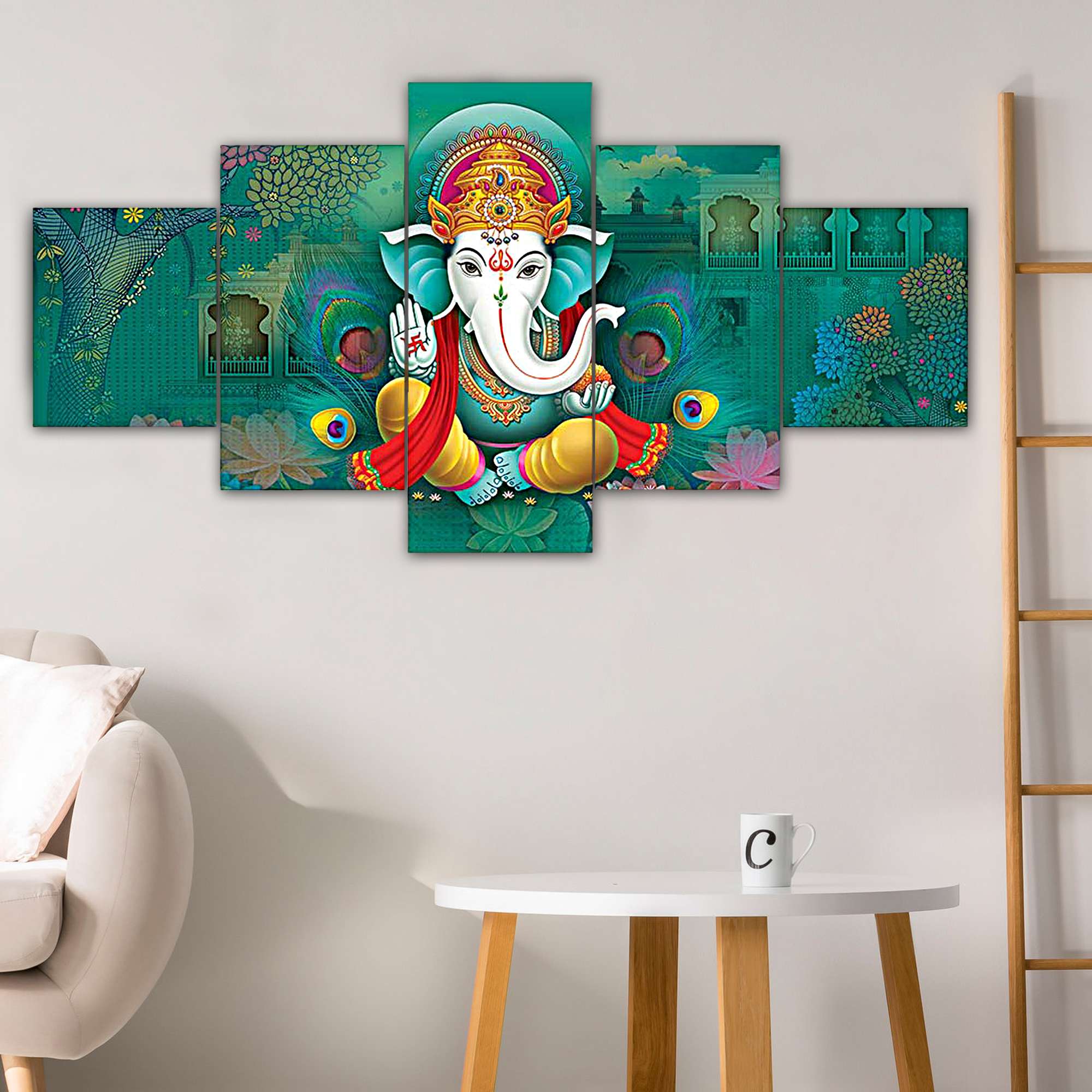 Ganesh Set of Five 3D Framed Paintings for Wall Decoration – Ideal for Home, Living Room, and Bedroom (125 x 60 CM)